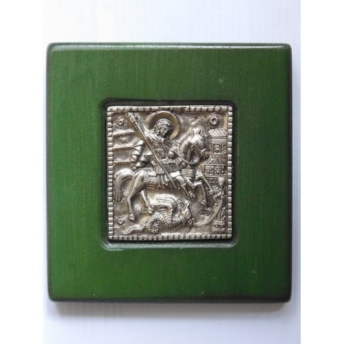 ICOANĂ ARGINTATĂ SFÂNTUL GHEORGHE PE LEMN VERDE