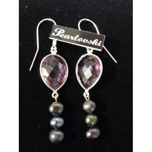 CERCEI CU AMETIST ȘI PERLE NEGRE DE CULTURĂ - HANDMADE IN ROMANIA