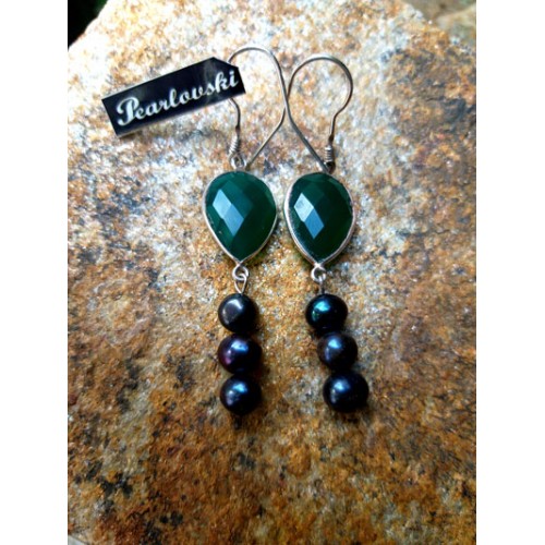 CERCEI PEARLOVSKI CU PERLE NEGRE ȘI ONIX VERDE handmade in Romania